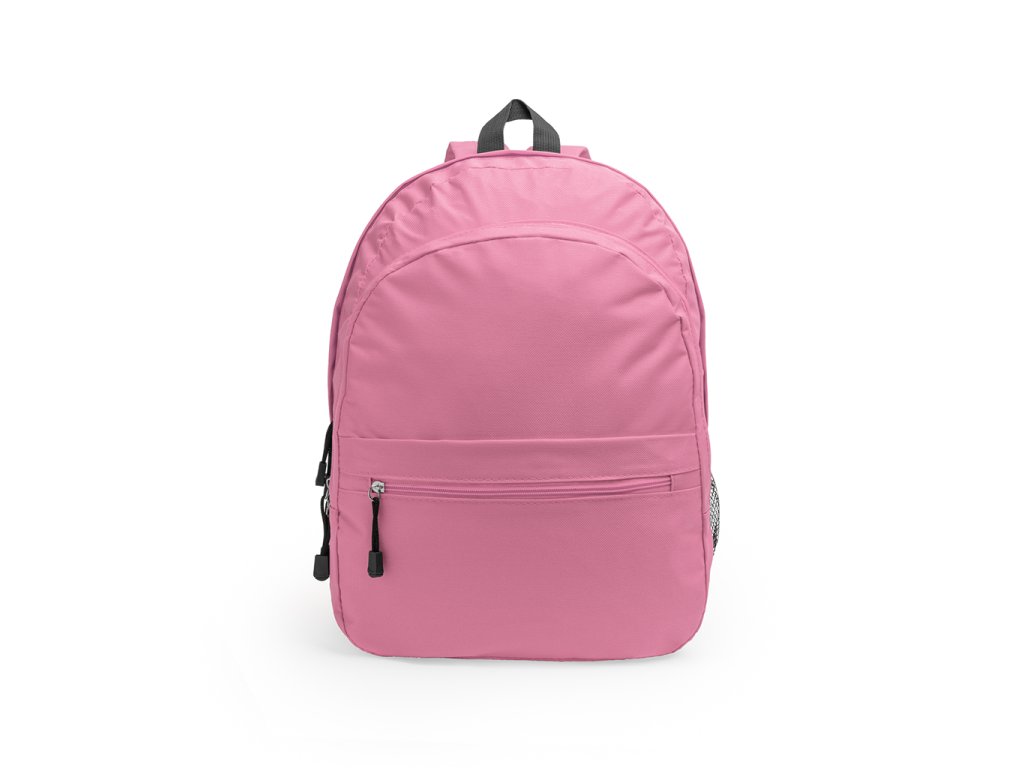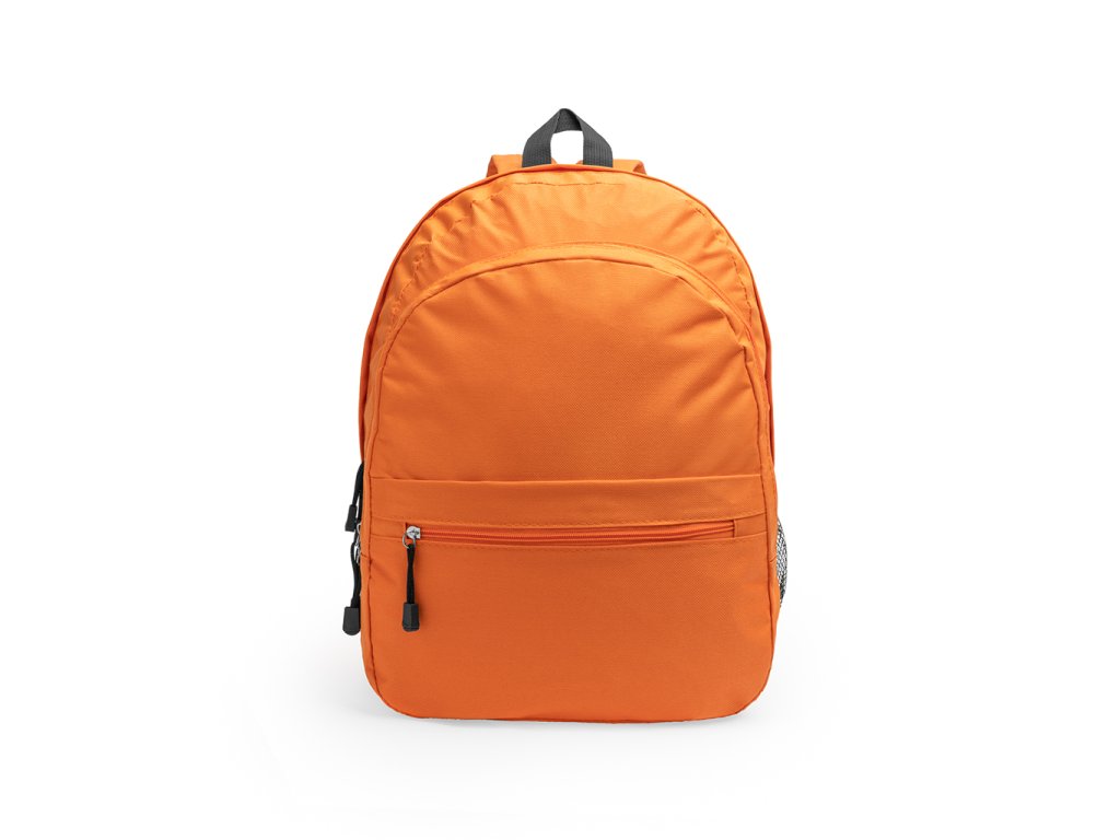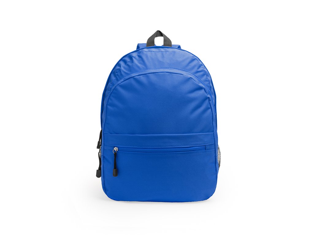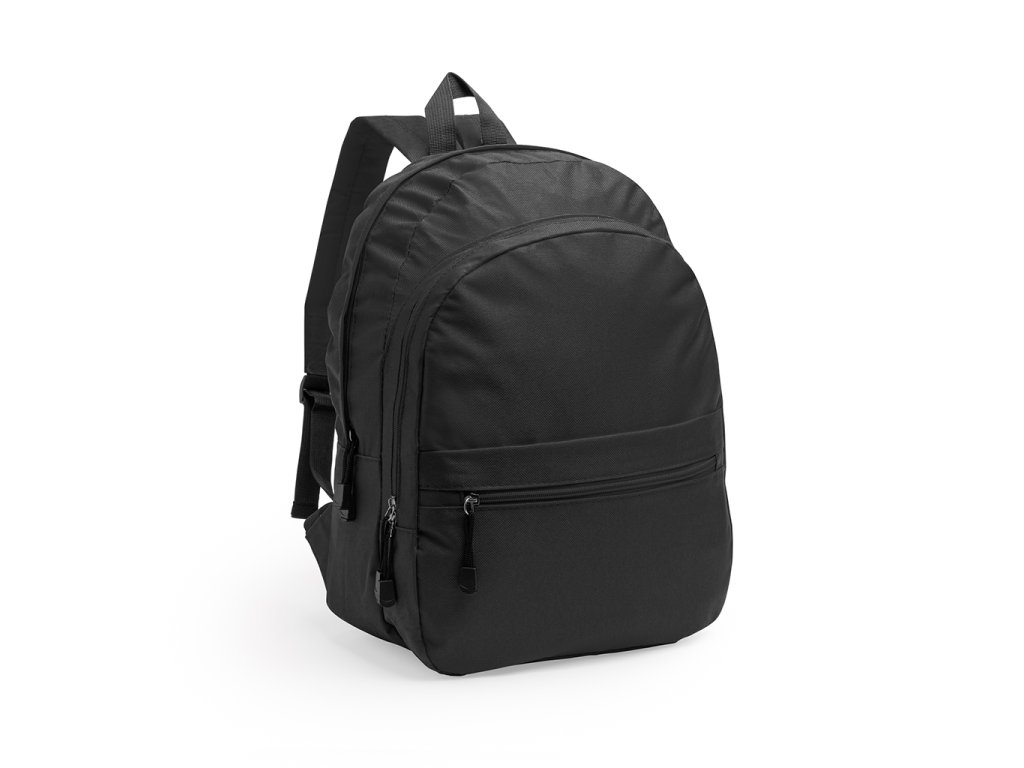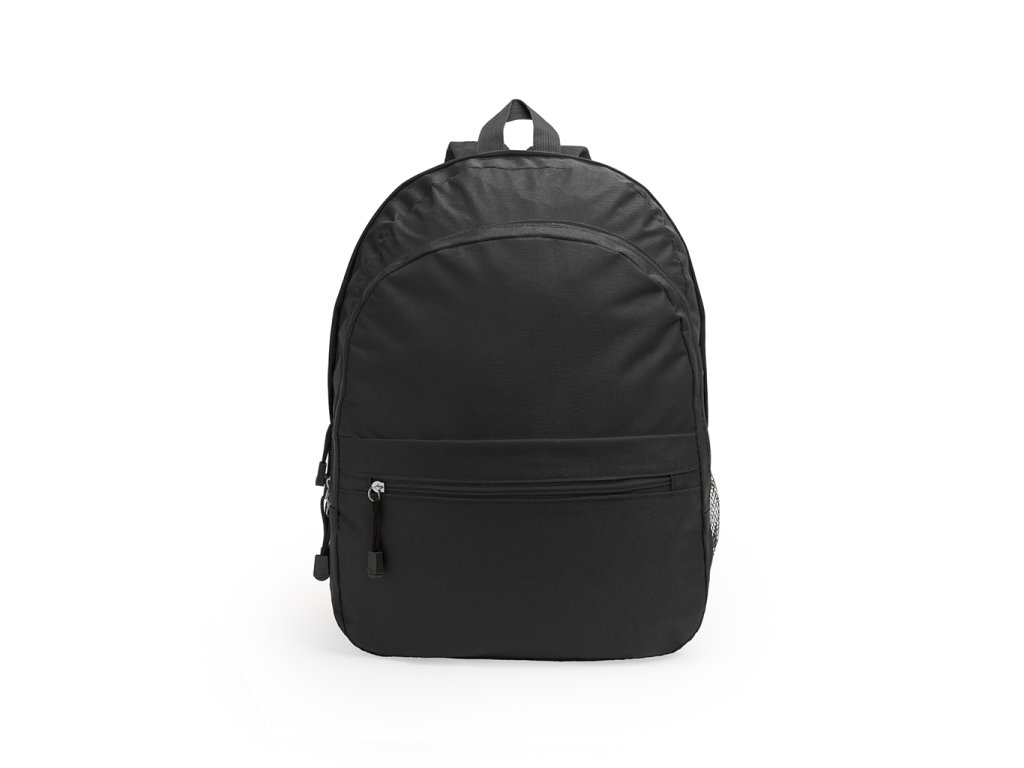 Batoh z polyesteru 600D se dvěma hlavními přihrádkami a přední kapsou. Jedna boční kapsa se síťovinou. Polstrovaná záda a ramenní popruhy.
