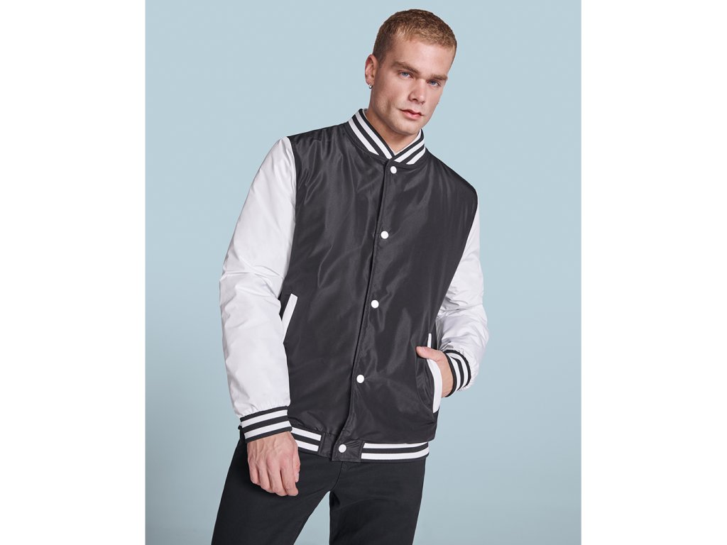Unisex lehce vyztužená bunda ve dvou barvách. Výstřih, manžety a spodní lem s 1x1 žebrováním a dvěma kontrastními pruhy. Boční kapsy se zapínáním na zip. Vnitřní prostor s podšívkou. Zapínání na knoflíky s kontrastní plastovou povrchovou úpravou. Vnitřní přístup na levé straně hrudníku a na zádech pro dodatečnou úpravu.