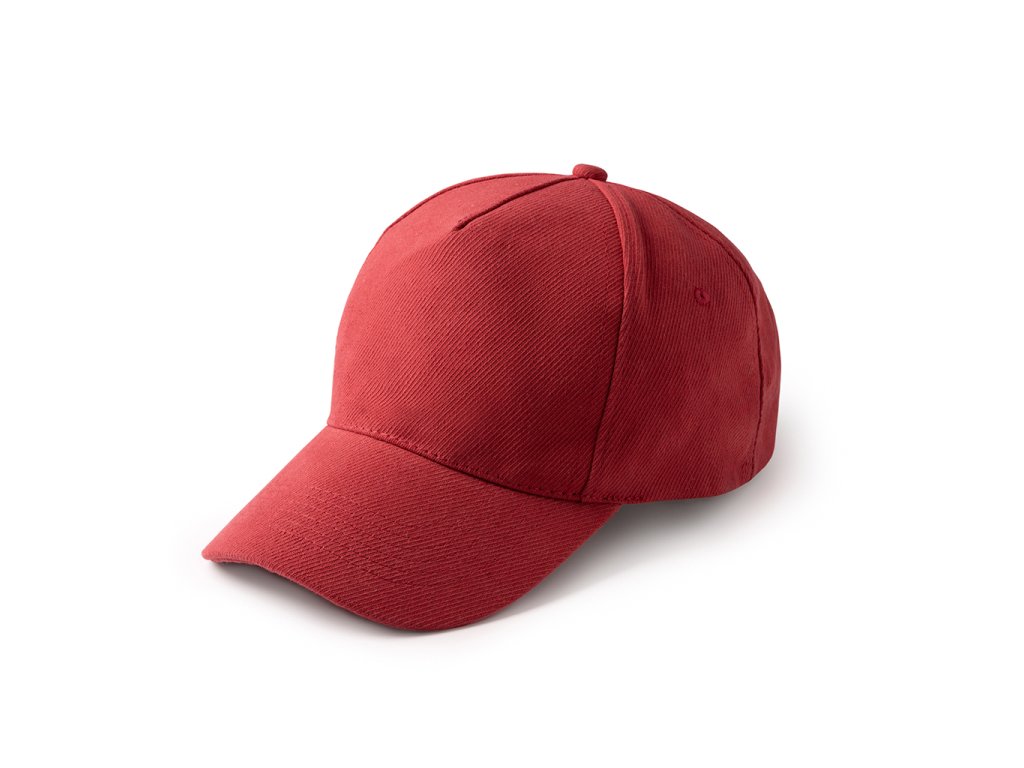 Pětipanelová čepice ze 100 % bavlny s nastavitelnou přezkou a větracími očky.