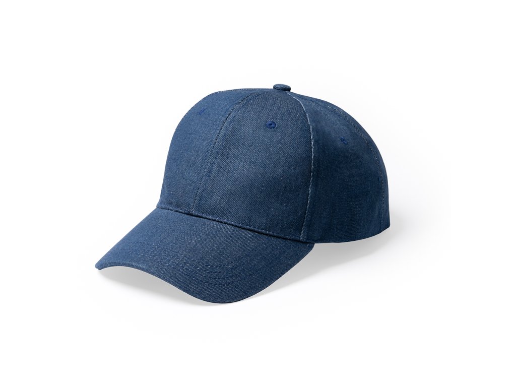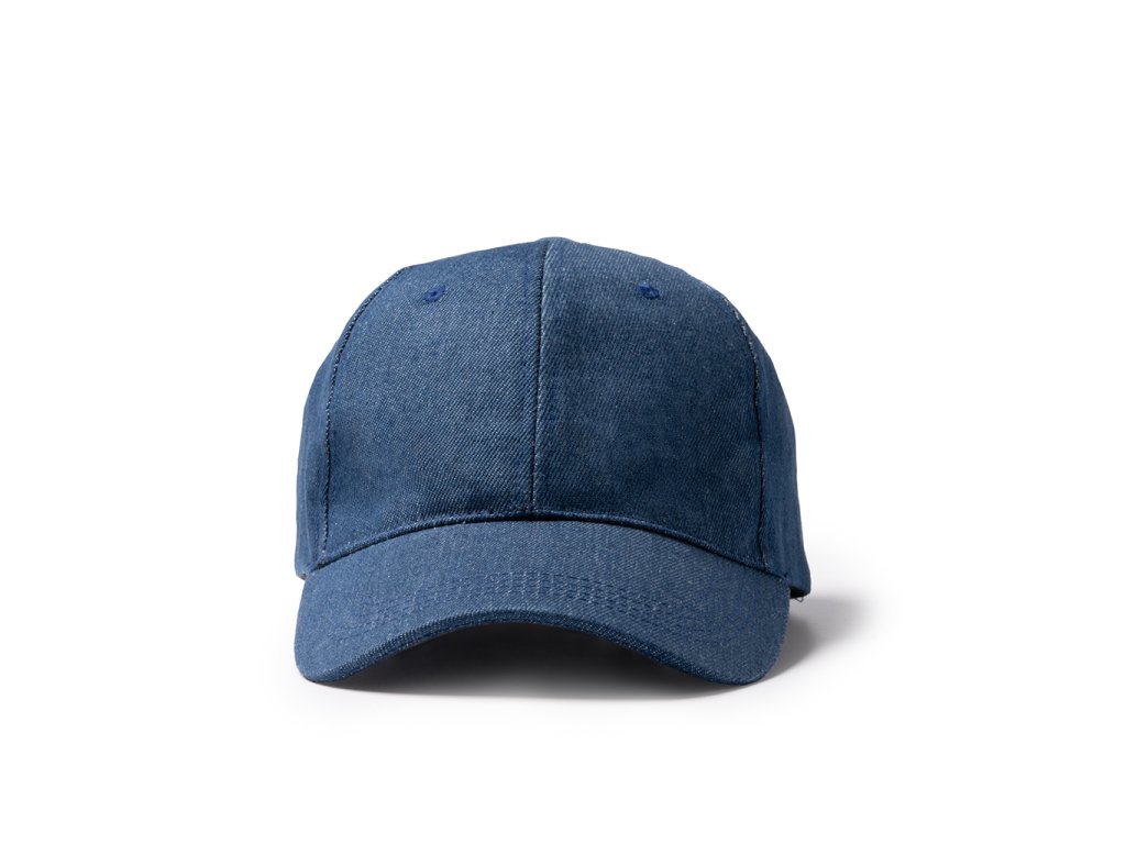 Šestipanelová čepice z recyklované džínové tkaniny. Větrací očka.