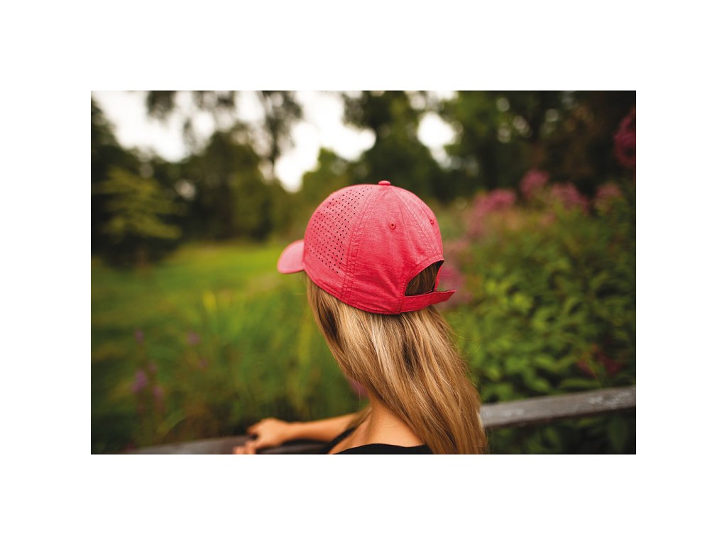 Šestipanelová čepice z funkčního materiálu, vyztužené čelo, obšité větrací otvory, rychleschnoucí a antibakteriální potící pásek. Zapínání má na suchý zip. Pro lepší odvětrávání je čepice na bocích perforovaná.