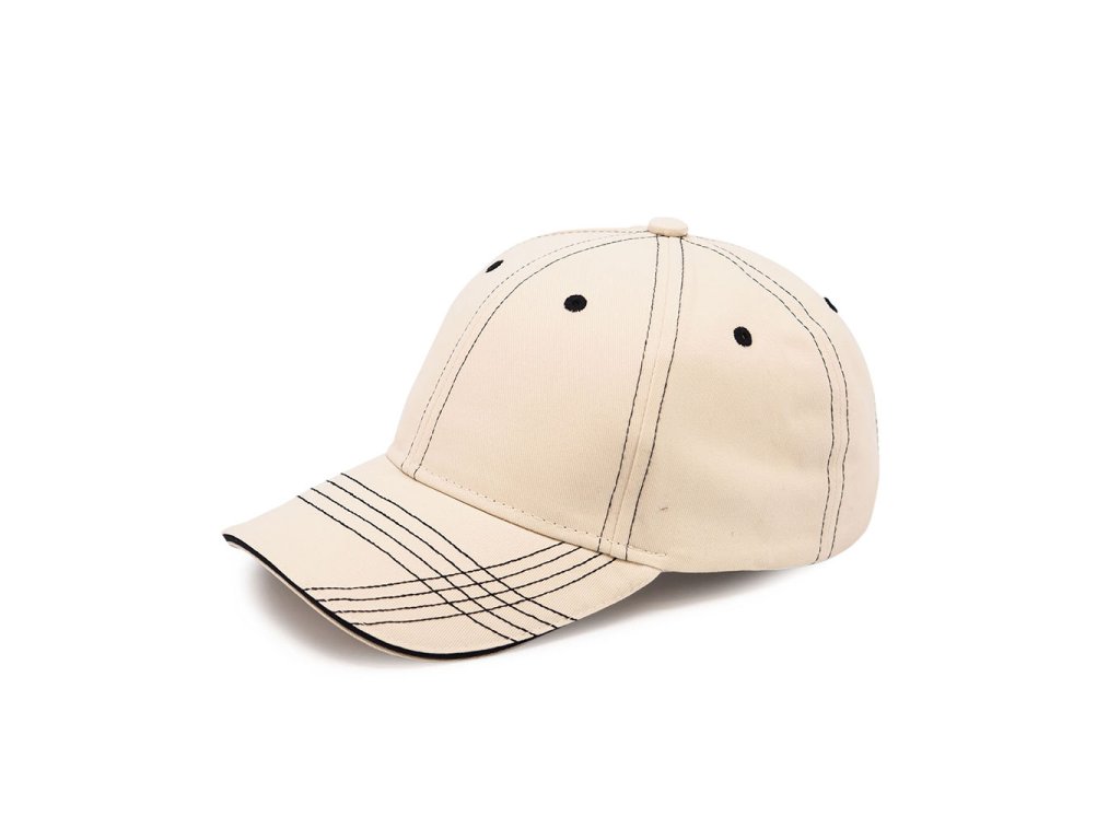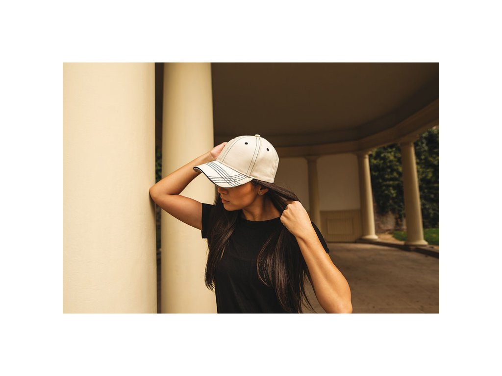 Šestipanelová čepice se zapínáním na kovovou sponu. V kšiltu je všitý proužek v doplňkové barvě. Kontrastní prošití a větrací otvory, bavlněný potící pásek a vnitřním lemem.