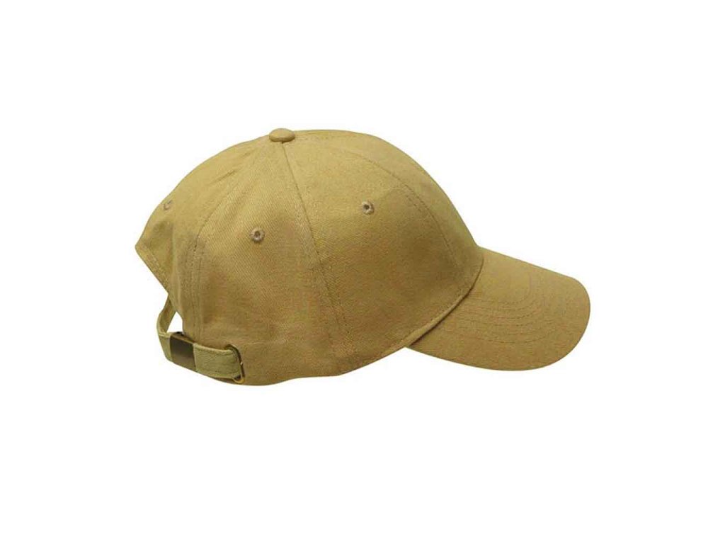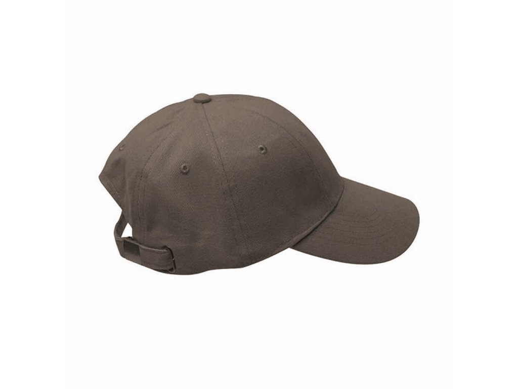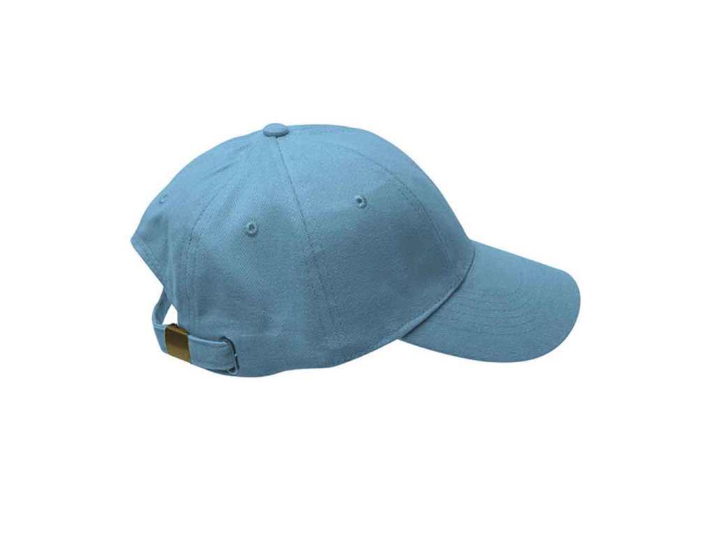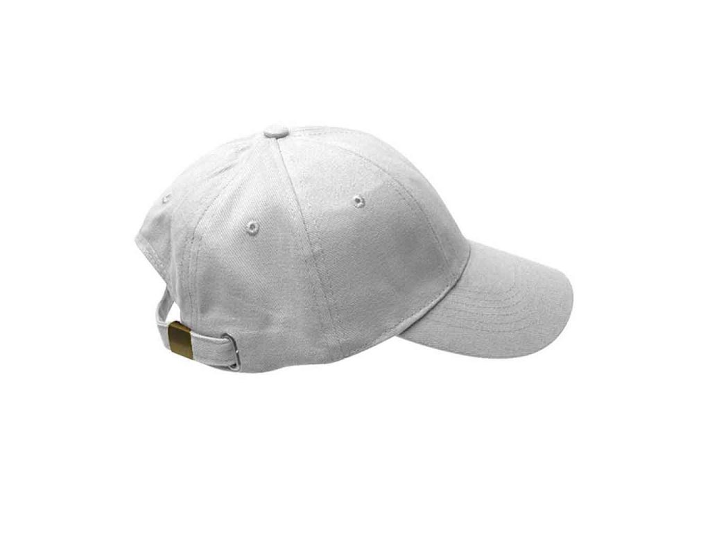 Baseballová šesti panelová čepice, díky posunutým švům ideální pro potisk či výšivku, zapínání na kovovou sponu s očkem.