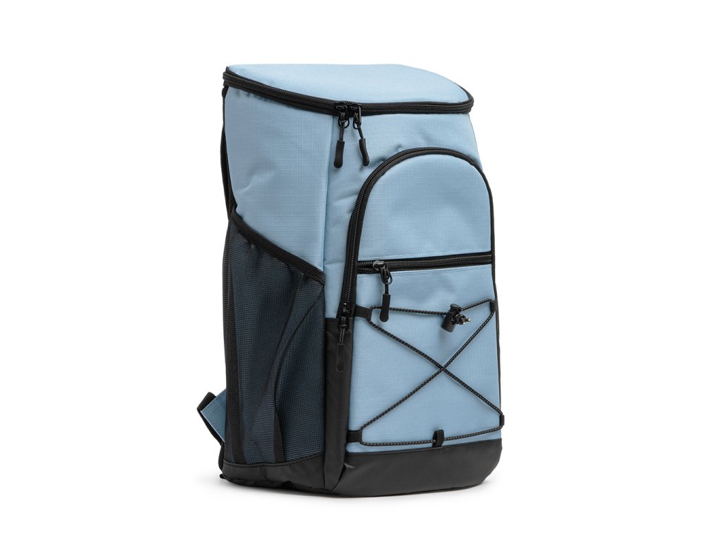 Chladicí batoh z ripstop polyesteru 210D. Izotermická podšívka v hlavní a přední kapse. Přední přihrádka na elastickou bungee šňůru a boční síťované kapsy. Objem 18 litrů. Polstrovaná záda a ramenní popruhy.