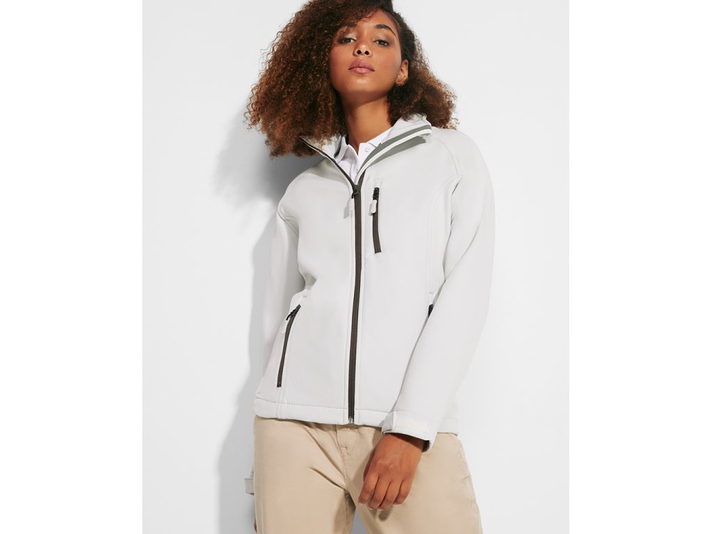Celopropínací softshellová bunda s krytkou u krku.Tři kapsy na zip. Upravitelná šířka patentu rukávu. Dolní okraj bundy na stahovací šňůrku.Větru a voděodolný materiál.