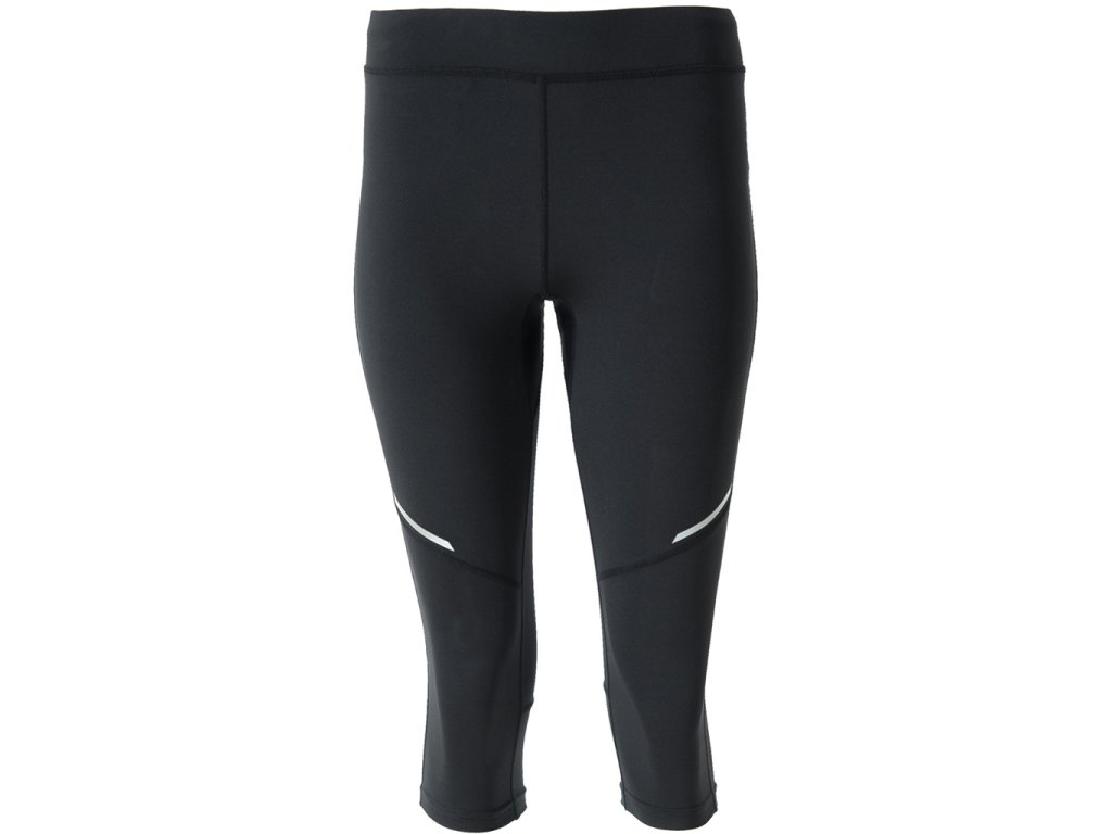 Dámské sportovní legíny do poloviny stehen. Elastický pas s vnitřní stahovací překříženou šňůrkou pro snadnější upevnění. Reflexní detaily. Vnější kapsa na zip na zadní straně.