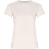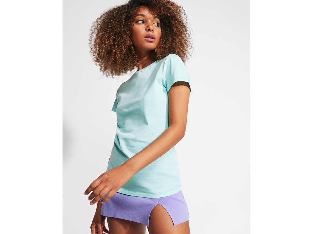 Dámské tričko s krátkým rukávem z organické bavlny, vypasovaný střih. Kulatý průkrčník s žebrováním 1x1. Dekorativní prošití na spodním lemu a rukávech. Boční švy. Barva 58 (melange) - složení 85% bavlna/15% polyester