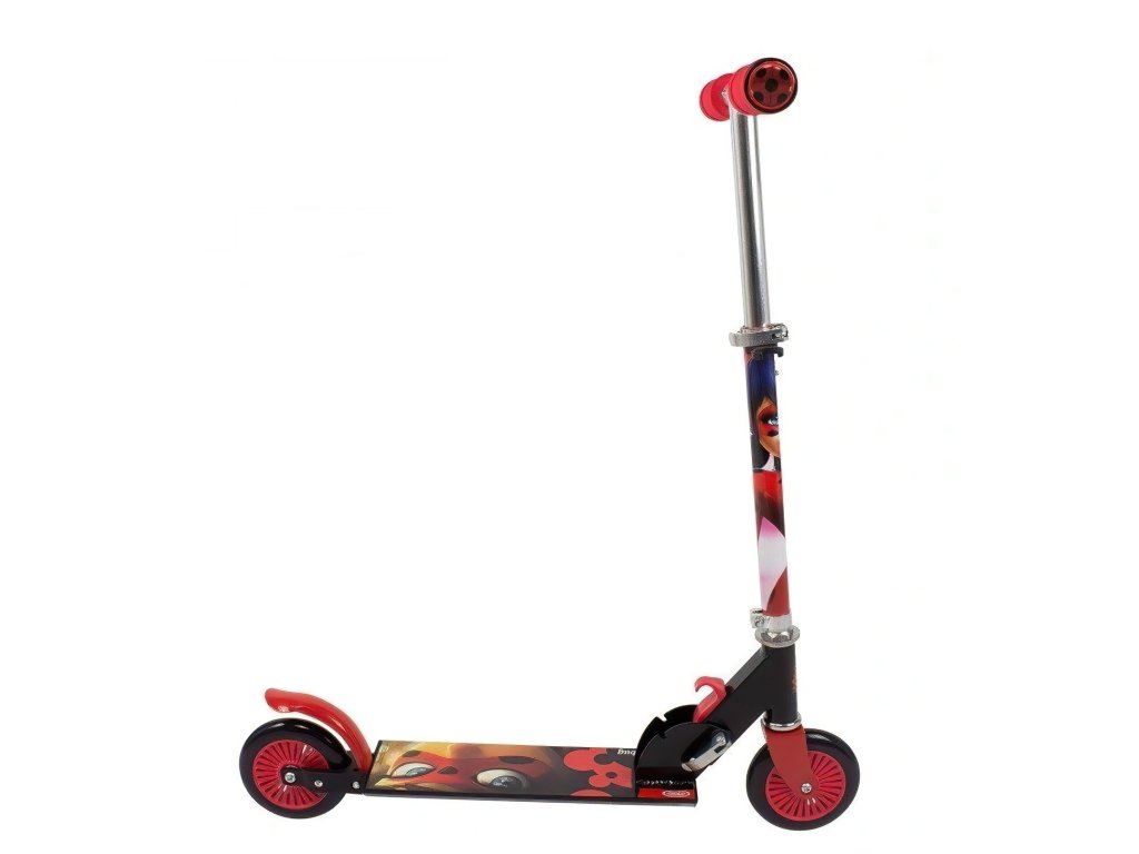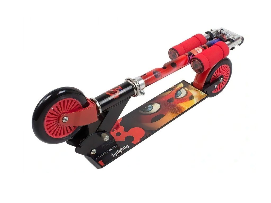 Dětská skládací koloběžka potěší všechny děti. Koloběžku lze snadno složit včetně rukojetí, takže při přenášení nezabere mnoho místa. Z hlediska jízdních vlastností potěší použití lehkého hliníkového rámu a nožní brzdy. Koloběžka má možnost nastavení výšky řídítek, díky čemuž se dá přizpůsobit výšce dítěte, takže jízda bude pro vaše dítě co nejpohodlnější. Další výhodou jsou měkké rukojeti řídítek z příjemného pěnového materiálu a protiskluzový nášlap. Polyuretanová kolečka zvyšují tlumení nárazů při jízdě po nerovném povrchu a kvalitní ložiska ABEC-7 zajišťují hladkou jízdu.