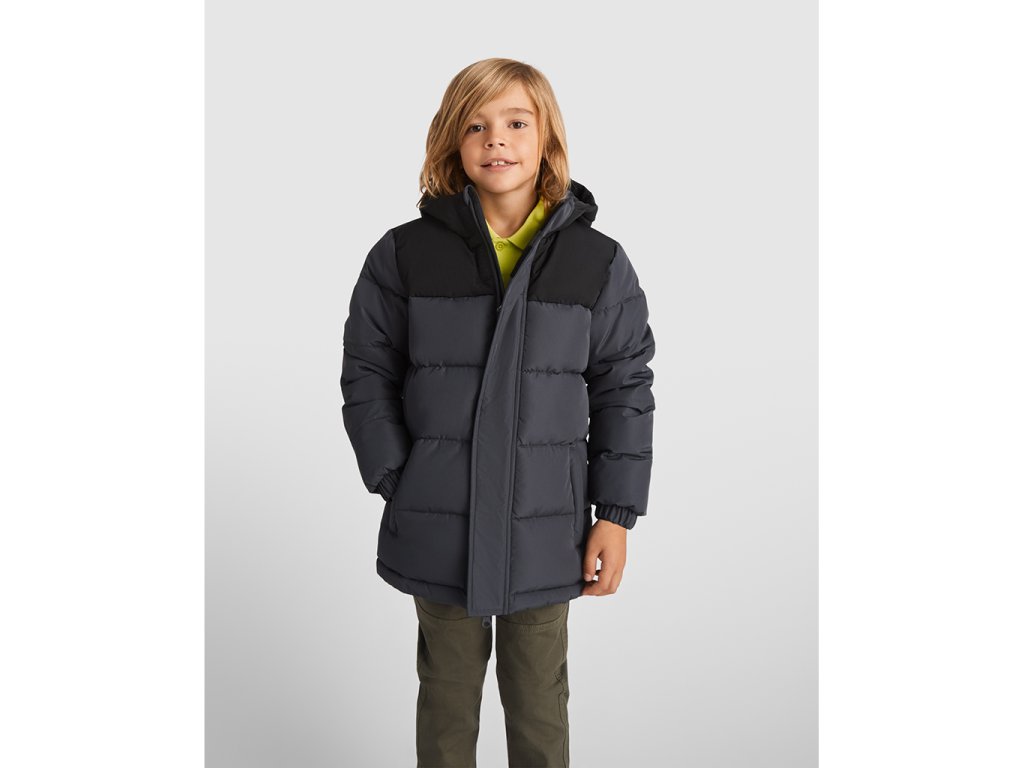 Bunda s polstrováním a kapucí napevno. Přední zip zakrytý zapínáním. Chránič brady. Dvě boční kapsy na zip. Elastické manžety Vnitřní přístup pro dodatečnou úpravu zad na zádech a na levé straně hrudníku.