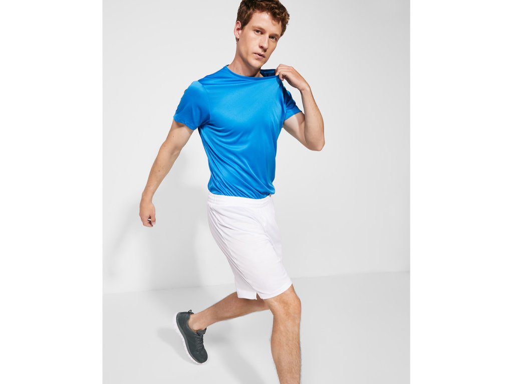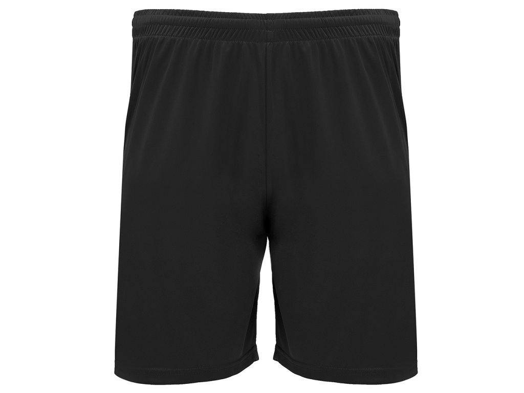 Krátké sportovní šortky s elastickým pasem s vnitřní stahovací šňůrkou a bezpečnostním prošitím. Boční rozparky.