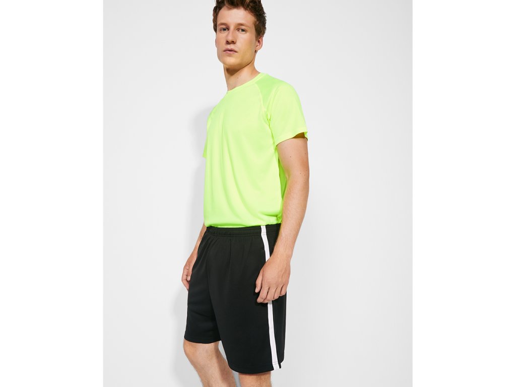 Dětské krátké sportovní bermudy. Postranní kapsy na zip. Elastický pas se stahovací vnitřní šňůrkou v kontrastní barvě. Kontrastní postranní pruh. Odnímatelný štítek. Funkční látka. Dostupné i v dospělých velikostech.