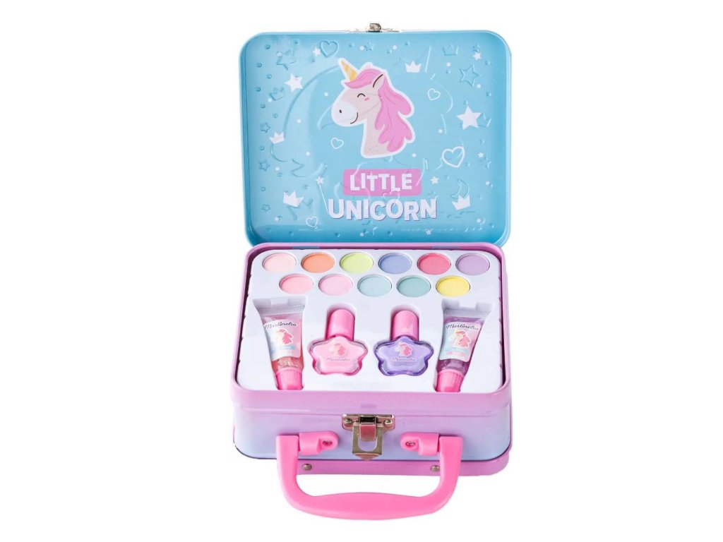 Rozkošný kosmetický kufřík pro malé parádnice s motivem jednorožce! Obsahuje bezpečné dětské líčidla – laky na nehty, lesky, oční stíny i doplňky. Ideální dárek pro holčičky, které rády napodobují maminku a hrají si na malé vizážistky. Vše je uloženo v pevném kufříku s třpytivým designem pro snadné přenášení. 💖