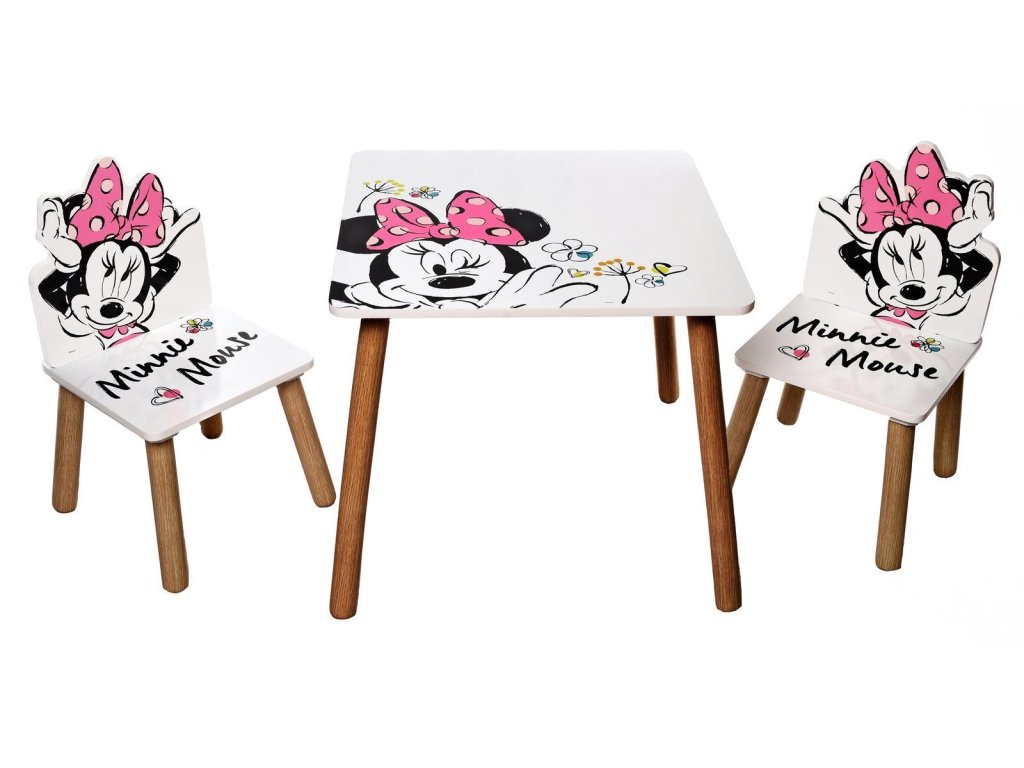 Nádherný dětský stůl s židlemi s roztomilou animovanou postavičkou Myškou Minnie z dílny Walt Disney potěší všechny děti. Barevný stůl s židlemi je nezbytnou součástí dětského pokojíčku. Známá kreslená postavička rozzáří každý pokojíček a zároveň vytvoří místo na hraní, kreslení, relaxaci.