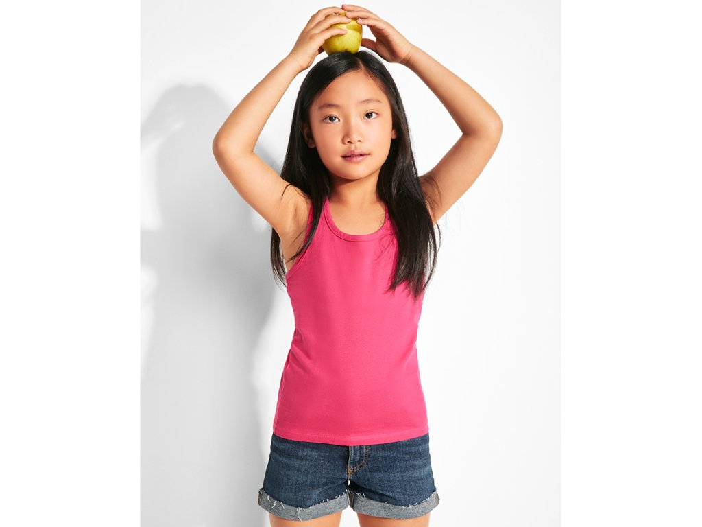 Přiléhavé dámské tílko s boxerskými ramínky z hladkého úpletu. Lemování výstřihu a ramínek z žebrovaného úpletu, boční švy. Barva 58 (melange) - složení 85% bavlna/15% polyester