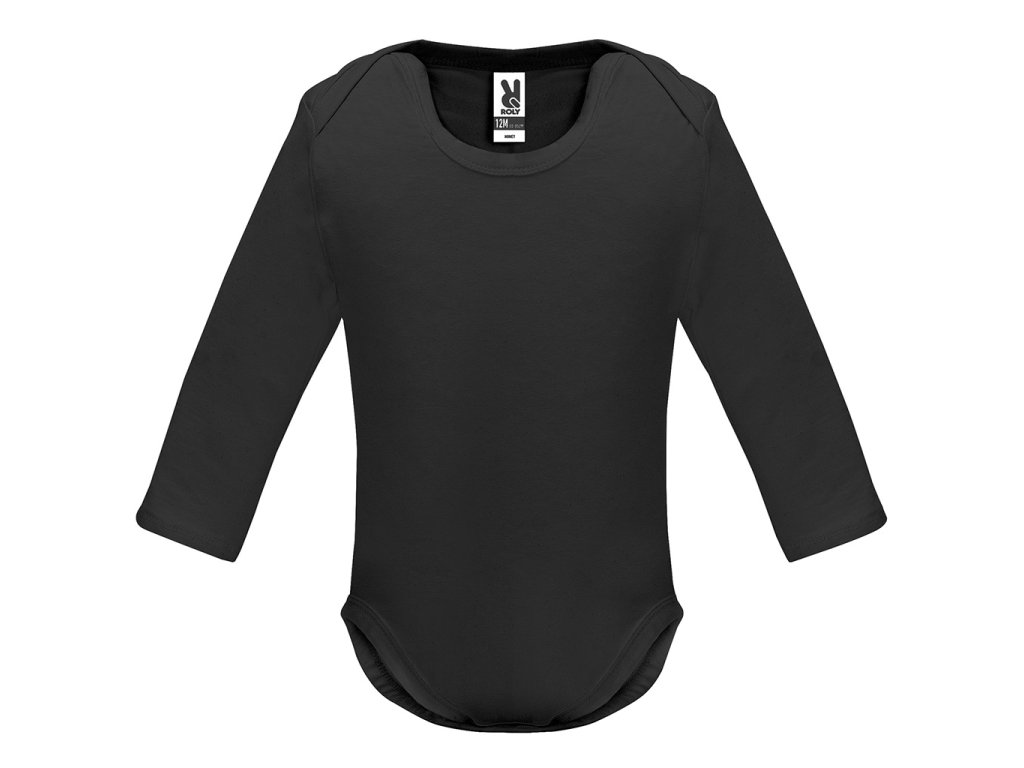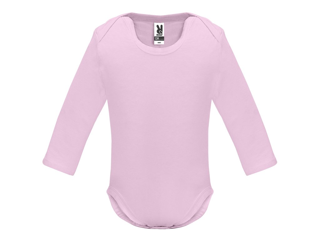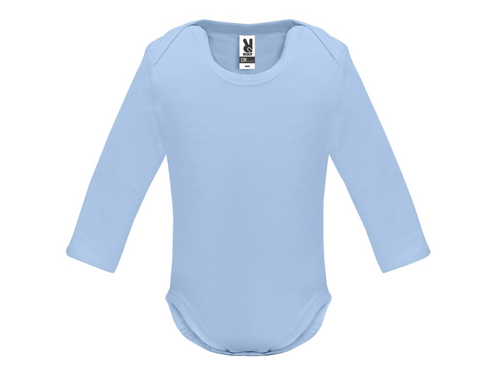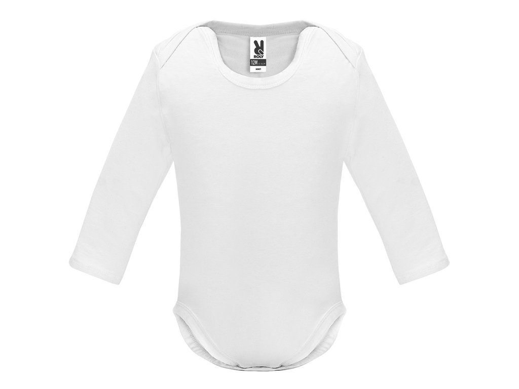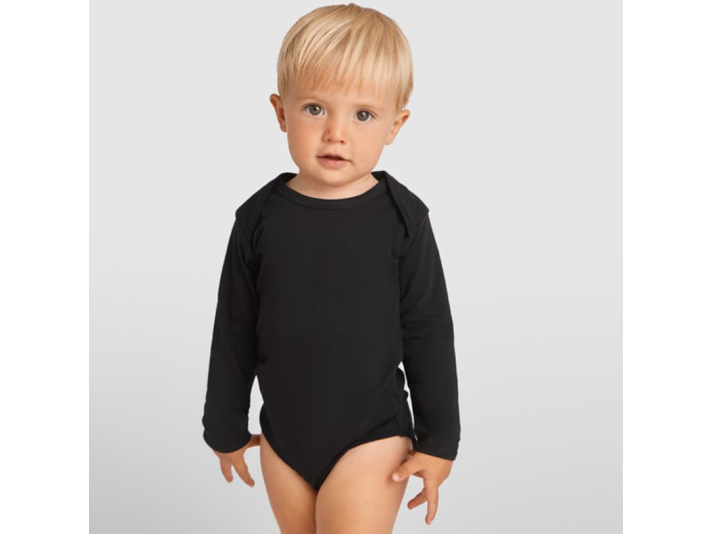 Kojenecké body s dlouhým rukávem. 1x1 žebrovaný průkrčník a spodní část. Zapínaní na cvočky v rozkroku. Na ramínkách překřížení pro snadné oblékání.