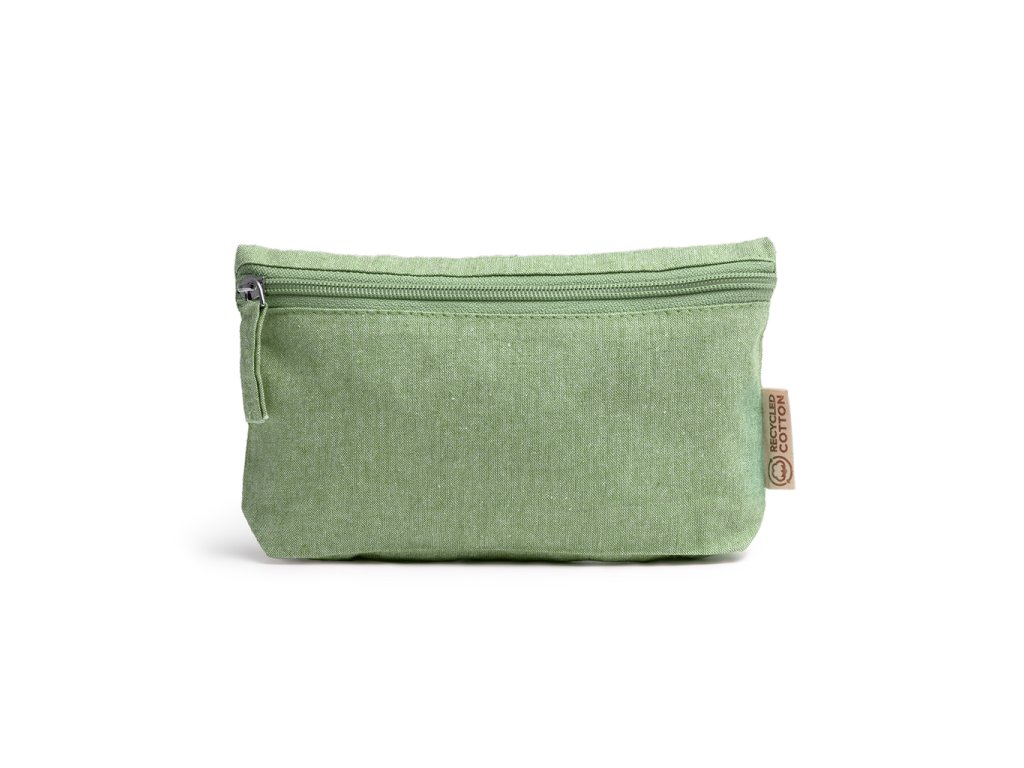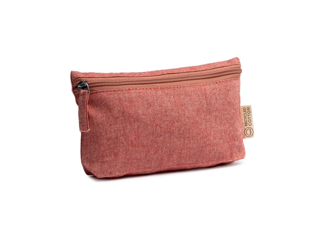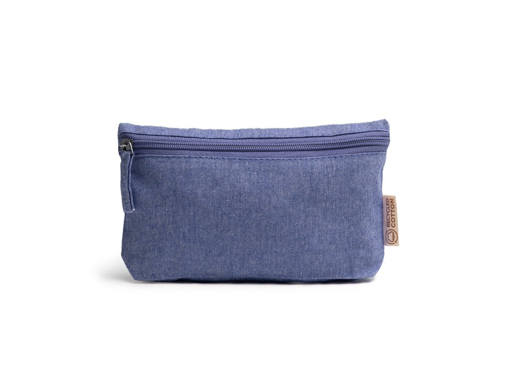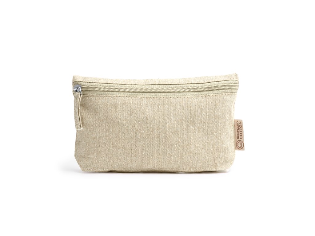 Víceúčelová toaletní taška z recyklované bavlny s odpovídajícím zipem a taháčkem.
