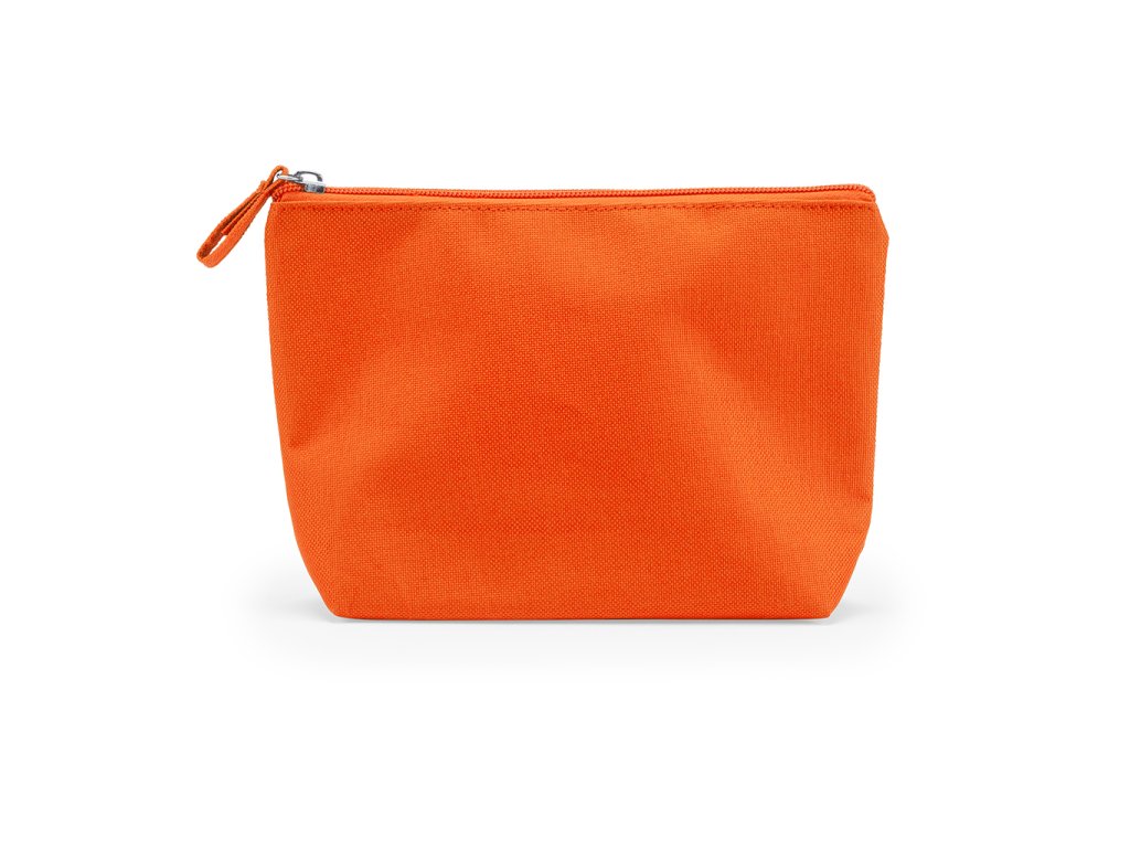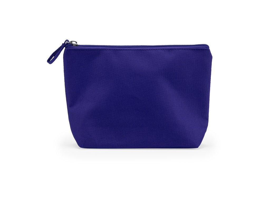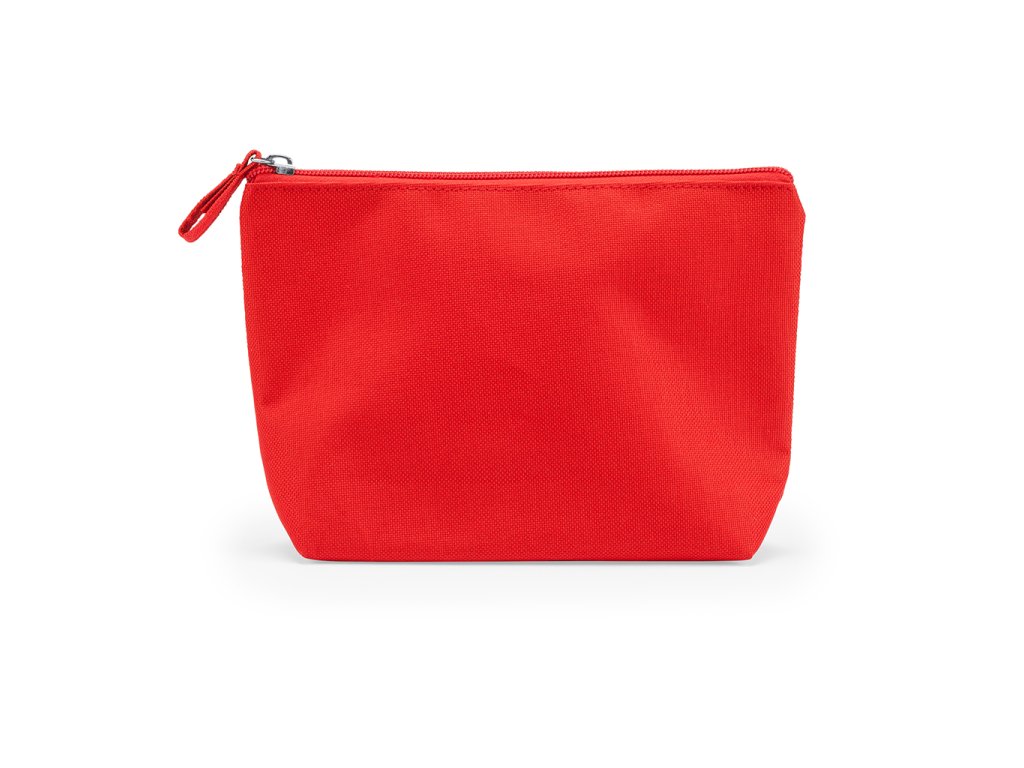 Toaletní taška z polyesteru 600D se zipem a taháčkem v odpovídající barvě.
