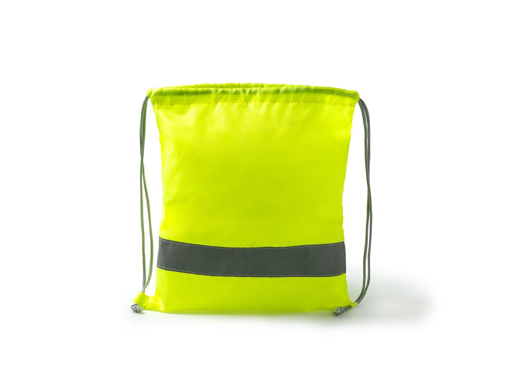 Batůžek se stahovacími šňůrkami s pruhem s vysokou viditelností, z polyesteru 210D.