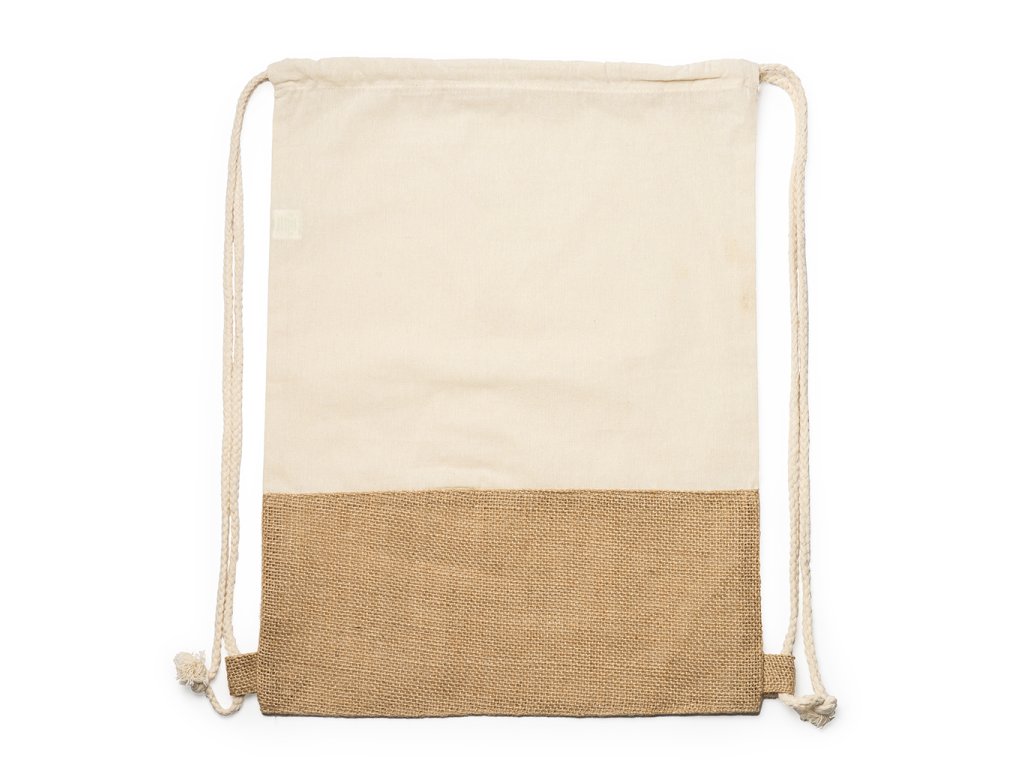 Batůžek se stahovací šňůrkou vyrobený z bavlny a juty o gramáži 120 g/m².