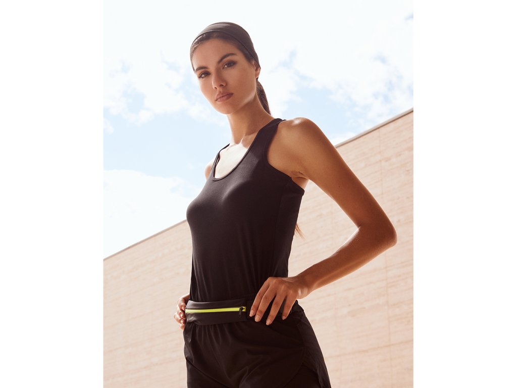 Multifunkční opasek vyrobený z elastické tkaniny. Reflexní zip,očko pro mobilní telefon. Opasek je adaptabilní na jiné příslušenství.