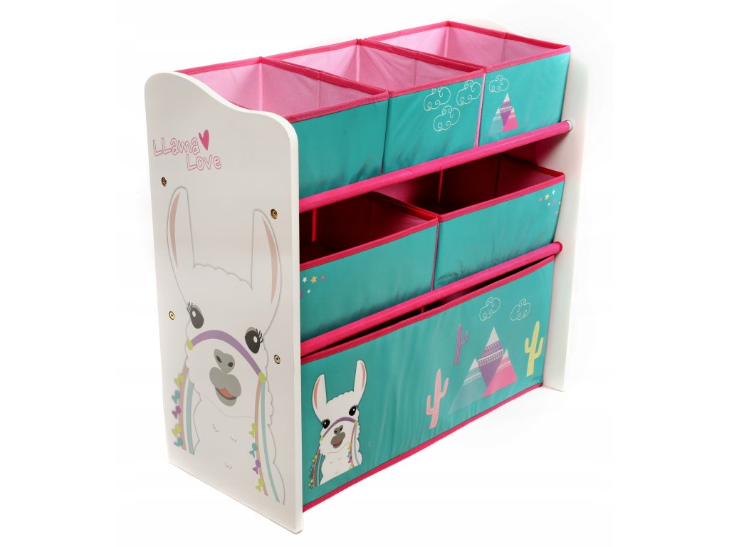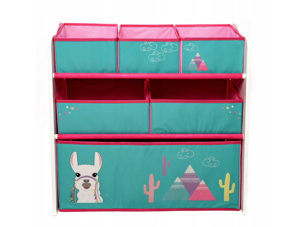Praktický dětský regál na hračky pro všechny děti. Nudné uklízení hraček se může stát zábavou. Organizér je ideální k uskladnění hraček, obsahuje 6 plátěných boxů, řešených tak, aby si děti mohly ukládat hračky samy.