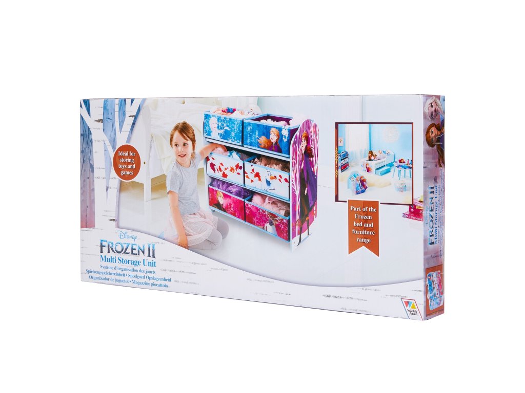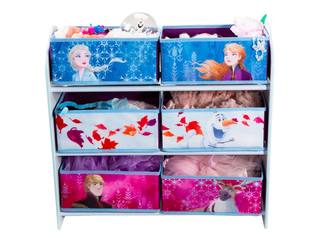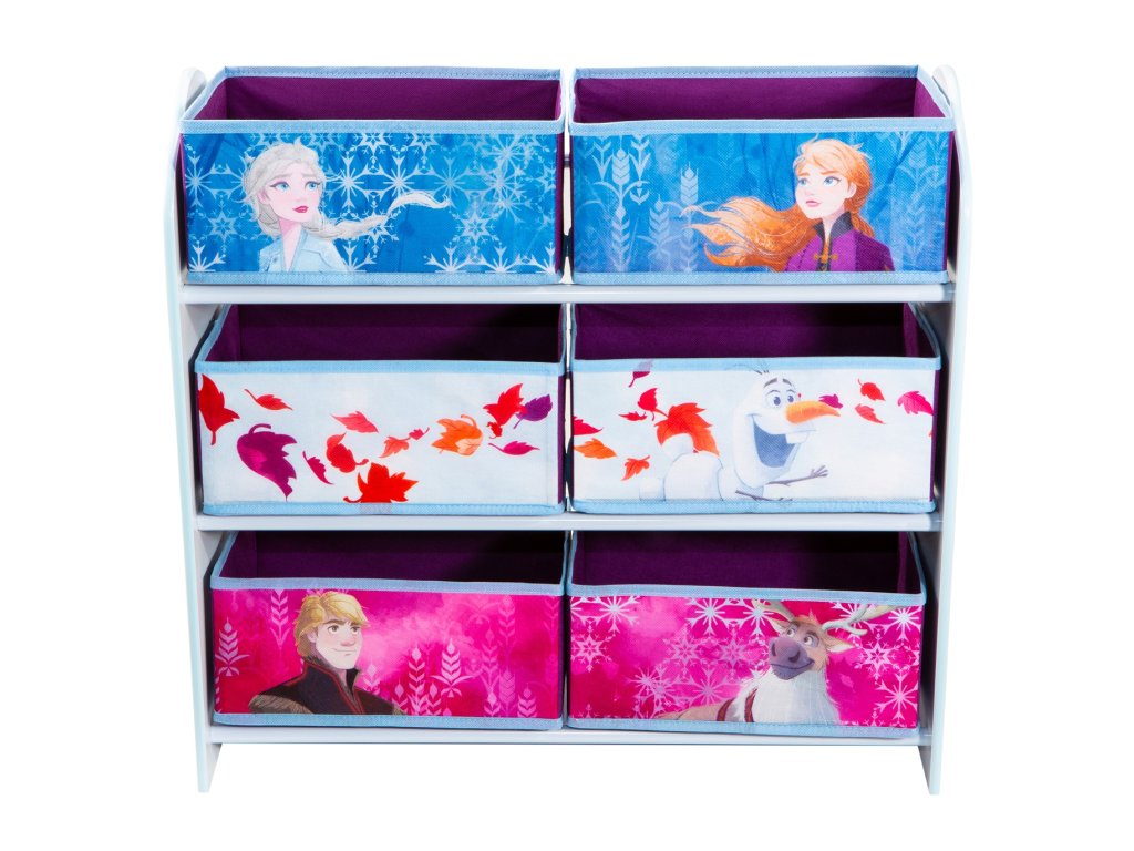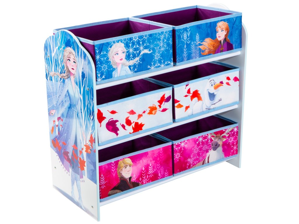 Dětský regál na hračky s motivem ledového království potěší všechny milovníky této pohádky. Nudné uklízení hraček se může stát zábavou a hračky si vždy najdou své místo v dětském pokoji. Organizér je ideální k uskladnění hraček, obsahuje 6 plátěných boxů, řešených tak, aby si děti mohly ukládat hračky samy.