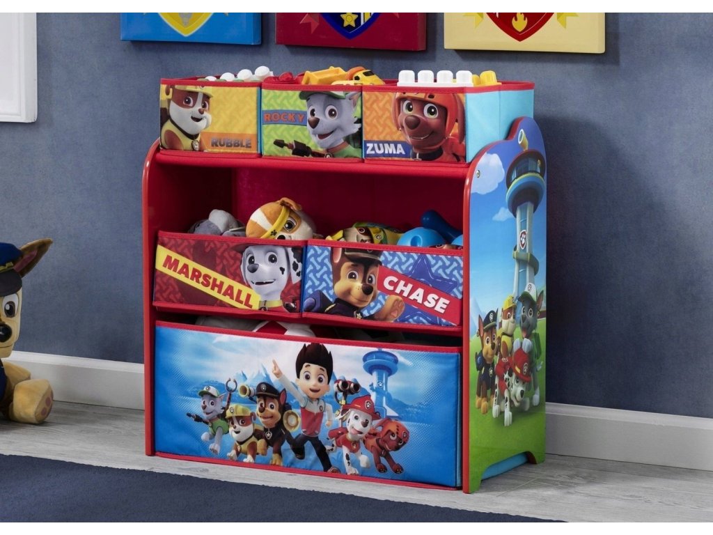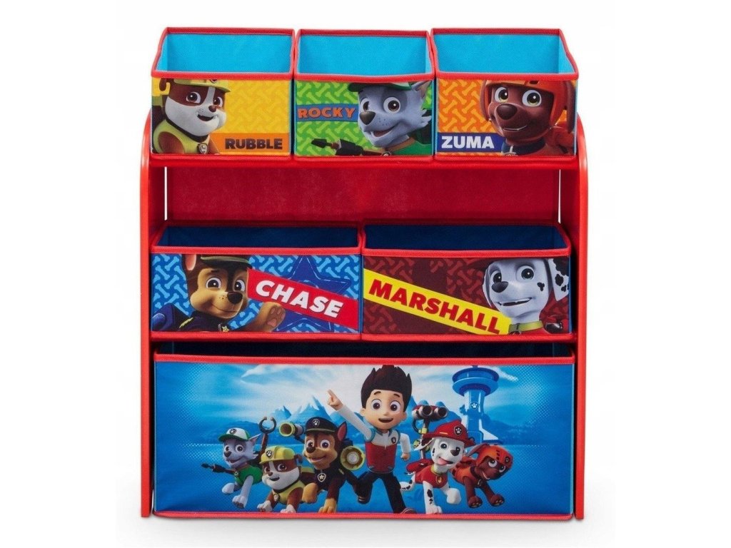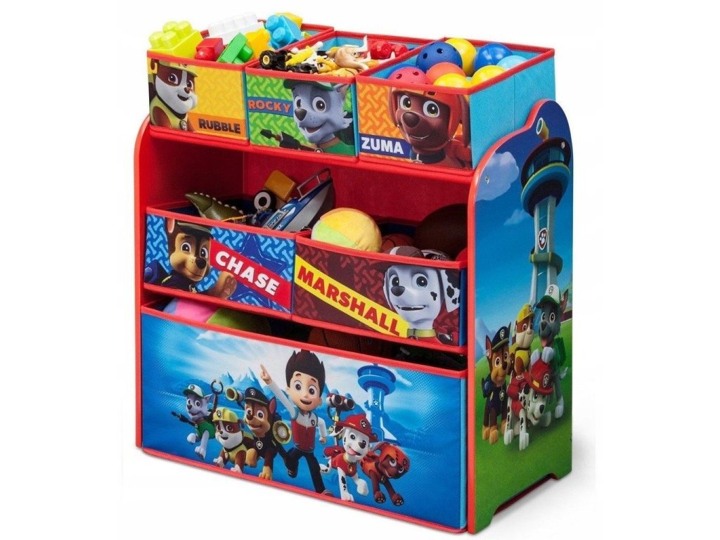 Zábavný dětský regál na hračky s veselým dětským motivem. Krásný doplněk do dětského pokojíčku. Nudné uklízení hraček se může stát zábavou. Organizér je ideální k uskladnění hraček, obsahuje 6 plátěných boxů, řešených tak, aby si děti mohly ukládat hračky samy.