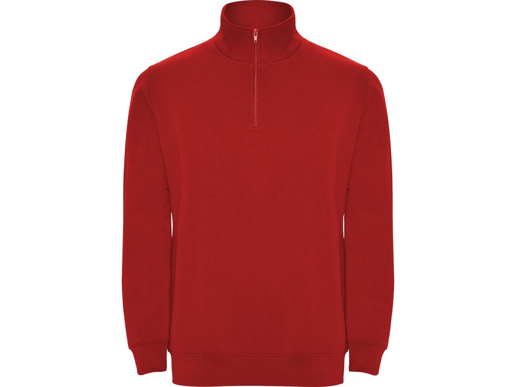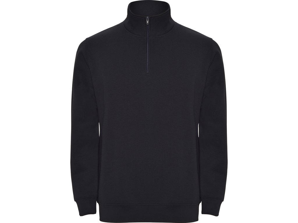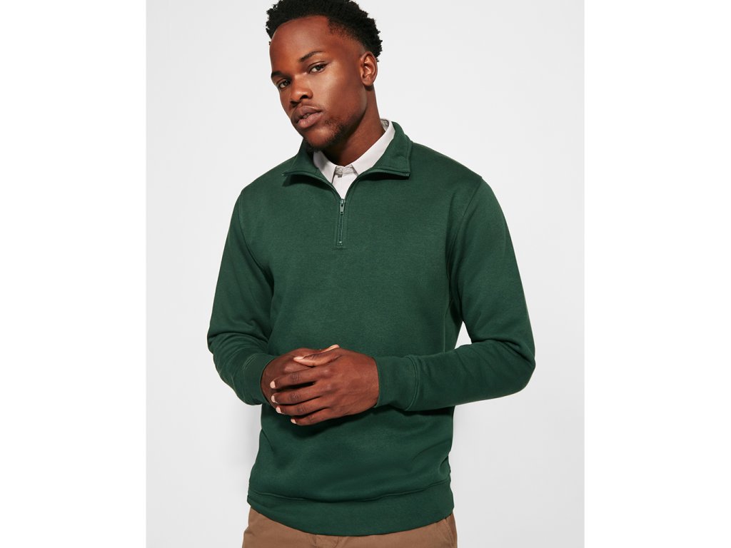 Mikina s krátkým zipem ve stejném odstínu a vysokým límcem. Vnitřní límec je ve stejném odstínu a mikina má zesílené švy průkrčníku, žebrovaný spodní lem a manžety.