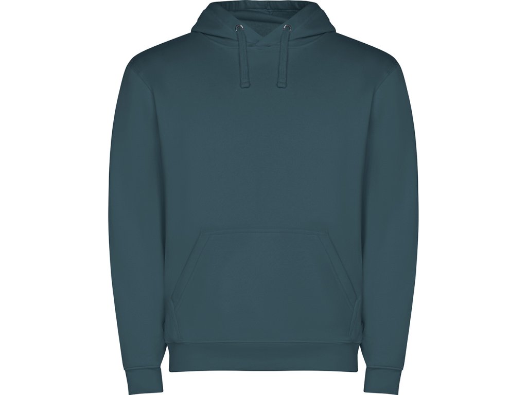Mikina s kapucí a klokaní kapsou. Elastický průkrčník, lemování rukávů a spodního patentu v žebrovaném úpletu 1x1. UPOZORNĚNÍ-MIKINY V DĚTSKÉM PROVEDENÍ JSOU DODÁVÁNY BEZ ŠŇŮREK V KAPUCI.