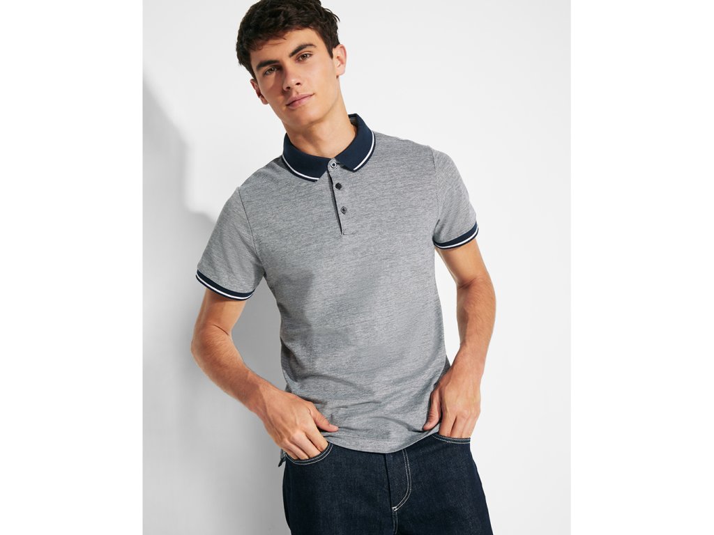 Žíhaná polokošile s krátkým rukávem. Límeček má kontrastní barvu a žebrování 1x1 a ozdobný kontrastní detail. Zapínání na 3 knoflíky, vnitřní léga v barvě límečku. Žebrované lemy na rukávech s kontrastním detailem. Spodní lem se zesíleným postranním rozparkem a ozdobným páskem. Střih zadního dílu je trochu delší než přední. Odnímatelný štítek.