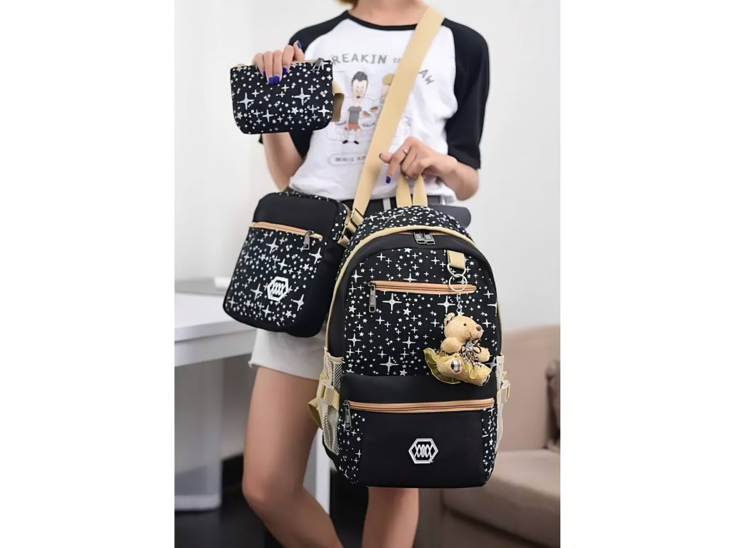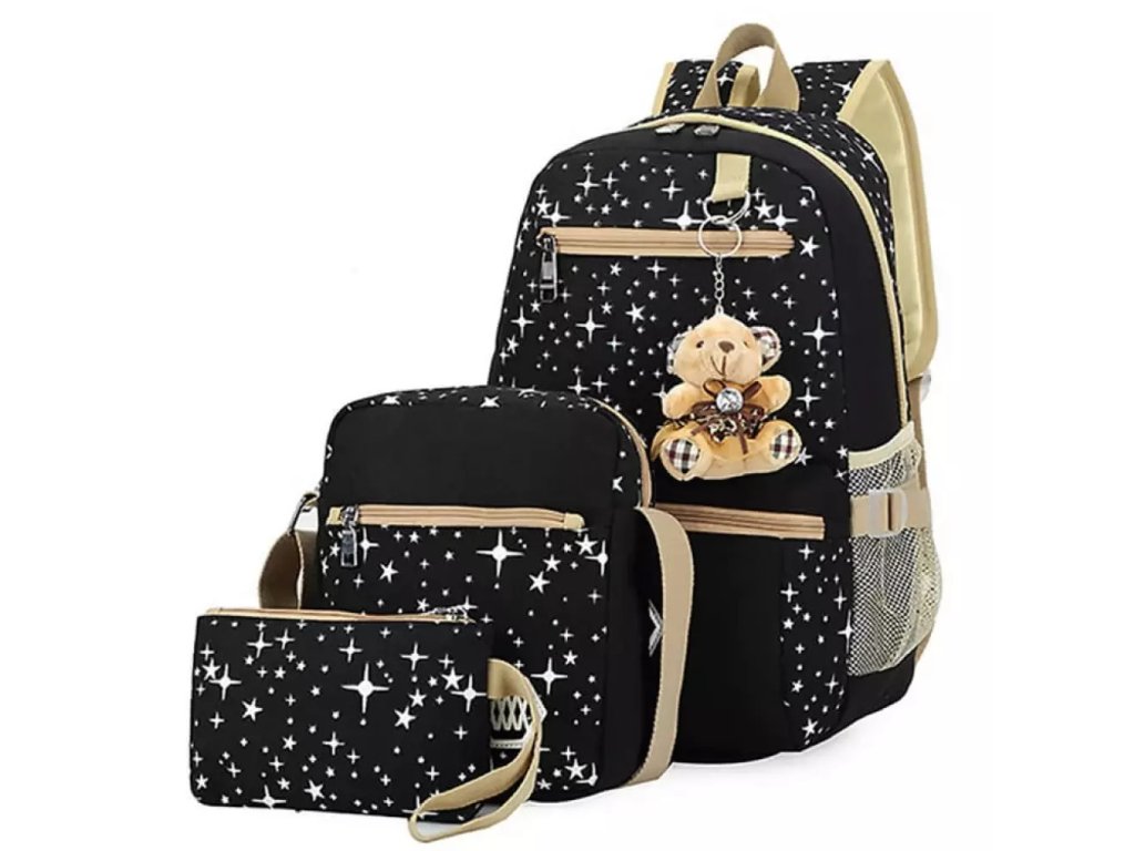 Školní dětský batoh 3v1. Pohodlný , funkční s taštičkou a toaletní taštičkou. Školní batoh se skládá z mnoha kapes, které umožní lepší organizaci prostoru. Po stranách dvě kapsy na umístění láhve s vodou. Zádové a ramenní popruhy zajišťují pohodlí při používání a rovnoměrné rozložení zátěže na záda dítěte. . Batoh je vyroben s odolného materiálu.